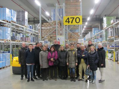 Nach einem interessanten Vortrag führte Niederlassungsleiter Steffen Thieme die Besuchergruppe in das Innere dieses komplexen Logistiksystems, das über verschiedene Flächenbereiche verfügt: 16.700qm Hochregal, 20.800qm Frischebereich, 4.000qm Leergut und 2.300qm Werkstatt mit Verwaltung/Kantine. 279 Mitarbeiter, davon 12 Azubis sind im Zentrum tätig. Täglich werden die Waren angeliefert, die für die 194 Netto-Filialen in ganz Oberbayern und München, passend umgepackt werden. Das erfordert einen Dreischichtbetrieb an sieben Tagen.