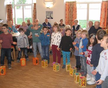 Sie besuchten die Seniorinnen und Senioren im Mühldorfer Caritas Heilig-Geist-Spital, um mit Szenen aus dem Leben von St. Martin, einem Laternentanz und vielen Liedern die Bewohnerinnen und Bewohner Seniorenwohnheimes zu erfreuen. Ein zweites Szenenspiel, das die Kinder aufführten, erzählt von einem kleinen Jungen, der teilen möchte wie St. Martin und spiegelt die Aktualität der Martinsgeschichte wider.