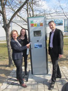 Mit einer neuen Ladestation für E-Fahrzeuge auf dem Zentralparkplatz haben die Stadtwerke Mühldorf a. Inn nun ein weiteres Zeichen für E-Mobilität in Mühldorf a. Inn gesetzt. Die Stadtwerke sind Mitgesellschafter der E-WALD GmbH. Diese verfügt über ein weites Netz von 140 Ladestationen im südostbayerischen Raum. Während die Ladestation am Stadtplatz derzeit noch kostenlos ist, sind für die neue Station aufladbare Scheckkarten erforderlich. Nähere Informationen unter http://shop.e-wald.eu/