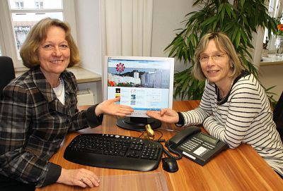 Auf der Startseite sind die aktuellen Themen angeboten. So gelangt man mit einem Klick auf „News“ zu den Pressemitteilungen aus dem Rathaus. Neu ist der Terminkalender. Aus der Liste ‚Termine‘ kann man einen Begriff wählen und sich alle Termine dazu anzeigen lassen. Beispielsweise, wenn man wissen will, wann die nächste Bürgermeistersprechstunde ist, wählt man „Bürgermeistersprechstunde“ aus der Liste, und im Kalender wird der Tag blau markiert, an dem man der Bürgermeisterin das nächste Mal ohne Voranmeldung seine Anliegen vortragen kann. Falls in diesem Monat keine Bürgermeistersprechstunde mehr stattfindet, muss man auf den nächsten Monat wechseln.
