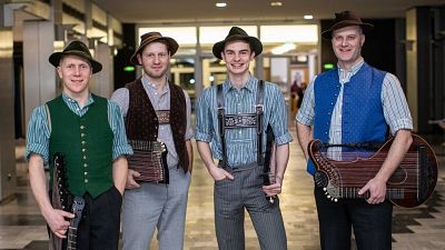 Mit drei Zithern und einer Konzertgitarre spielen sie feinsinnig und mitreißend Überliefertes, Eigenkompositionen und für die Gruppe eigens arrangierte Blasmusikmärsche.