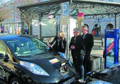 In Partnerschaft mit dem Wirtschaftsförderprojekt Elektromobilität im Bayerischen Wald (E-WALD) stellte DESIGN & NATURE die beiden Fahrzeuge der Modellreihe Nissan Leaf für die Testfahrt bereit. Die Fahrzeuge wurden an der E-Tankstelle der Stadtwerke Mühldorf im Bereich der Bushaltestelle am Stadtplatz übergeben.