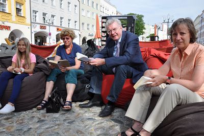 Vom 8. bis 11. August heißt es „Lesen“ am Stadtplatz. Mühldorf a. Inn ist eine der 23 Städte in Deutschland und Österreich in denen die Aktion „StadtLesen“ durchgeführt wird. Mühldorf befindet sich dabei in guter Gesellschaft mit Wien, München und Berlin so wie Salzburg und Klagenfurt. Von einer Autorenlesung bis hin zum Marathonlesen der BürgerInnen ist an diesen Tagen alles geboten. Täglich ist am Stadtplatz ab 9.00 Uhr bis zum Einbruch der Dunkelheit „Lesen und Schmökern“ nach Herzenslust in über 3000 Büchern angesagt.