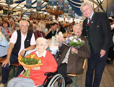 Der Einladung der Stadt zum traditionellen Seniorennachmittag auf dem Mühldorfer Traditionsvolksfest wurde wieder begeistert gefolgt. Soviel wie noch nie, nämlich 2797 Seniorinnen und Senioren hatten ihre Gutscheine für eine Volksfest-Brotzeit abgeholt und viele von ihnen waren ins Weißbierzelt gekommen, um einen gemütlichen Nachmittag mit Blasmusik und Verlosung zu genießen.