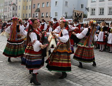 Am Nachmittag als alle Gruppen - Schützen- und Trachtenvereine, Blaskapellen, Spielmannszüge, aber auch festlich geschmückte Kutschen und Festwagen - mit rund 3400 Beteiligten vom Stadtwall über den Stadtplatz, die Innbrücke hinaus zum Volksfestplatz zogen, säumten rund 20.000 begeisterte Zuschauer den Weg. Eine besondere Ehre waren diesmal die vielen Gebirgsschützen, die im Zug mitgingen. Unter den deutschen Teilnehmern waren die Süddeutschen natürlich stärker repräsentiert, aber es kamen auch Gruppen aus Niedersachsen und Sachsen-Anhalt. Die internationalen Gruppen kamen aus Italien, Österreich, Polen, Ungarn, Peru und aus Schottland. Die Williamwood Pipe Band aus Glasgow bildete das Schlusslicht des Zugs und bereicherte mit dem Klang der Dudelsäcke den Umzug noch um ein besonderes Highlight.