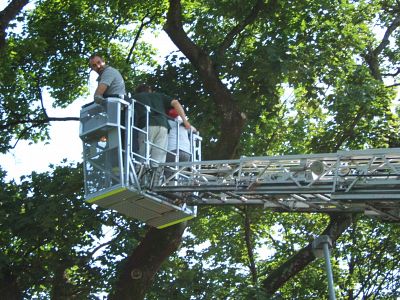 Ein ganz besonderes Erlebnis hatten die Buben und Mädchen, die am 16.6. 2011 vormittags in der Stadtbücherei waren. Zum Internationalen Jahr der Wälder fand in Zusammenarbeit mit dem Amt für Ernährung, Landwirtschaft und Forsten Töging und der Feuerwehr Mühldorf eine außergewöhnliche Lesung statt. Zuerst las Förster Andreas Schlegel aus dem spannenden Buch "Tobie Lolness" vor. Tobie ist nur anderthalb Millimeter groß und lebt mit seinem Volk in einer alten Eiche. Nach der Lesung konnten die Kinder dann die Welt von Tobie Lolness direkt in Augenschein nehmen. Mit der Feuerwehr Mühldorf ging es hinauf in eine Baumkrone.