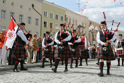 Der Mühldorfer Schützen- und Trachtenumzug war auch in diesem Jahr wieder ein voller Erfolg. Er war wieder international, bunt und traditionell. Unangefochtenes Highlight war die Williamwood-Bagpipe-Group aus Glasgow, die laut und selbstbewusst den Zug beschloss.