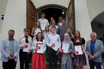 Gut zwei Dutzend Schülerinnen und Schüler waren zur diesjährigen Schülerehrung am Montag, 22. September, ins Rathaus eingeladen. Die Geehrten aus 13 Schulen mit Hauptwohnsitz in der Kreisstadt Mühldorf a. Inn schlossen ihre Schullaufbahn mit einem Notendurchschnitt von mindestens 1,5 ab. Bürgermeister Michael Hetzl und Schulreferent Dr. Reinhard Wanka überreichten den Absolventinnen und Absolventen als Anerkennung für die hervorragenden Leistungen jeweils eine Urkunde und ein Geldgeschenk.