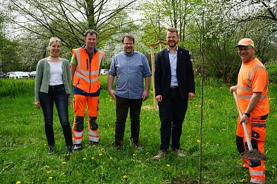 Bürgermeister Hetzl pflanzt anpassungsfähigen Klimabaum in Wiesenbiotop