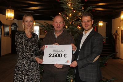 Die Mühldorfer Tafel darf sich über eine Spende aus dem Mühldorfer Hilfsfonds in Höhe von 2500 Euro freuen. Bürgermeister Michael Hetzl und Elisabeth Demmelhuber, Verwaltung Mühldorfer Hilfsfonds, übergaben den Scheck an Detlef Künzel, den Leiter der Tafel. „Mit großer Freude gebe ich diese Spendengelder an die Tafel weiter, weil ich weiß, dass dieses Geld so den Armen und Bedürftigen in unserer Kreisstadt Mühldorf a. Inn zu Gute kommen wird“, sagte Bürgermeister Michael Hetzl. „Die Tafel leistet einen großartigen Beitrag dafür, unsere Stadtgesellschaft zusammenzuhalten. Darum möchte ich mich selbst bei den ehrenamtlichen Helferinnen und Helfern mit einer kleinen Lebkuchen- und Stollenspende bedanken.“