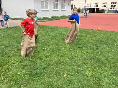 Prachtwetter bei Topfschlagen, Sackhüpfen und Ringewerfen