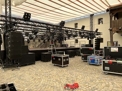 Der Aufbau im Haberkasten-Innenhof ist in vollem Gang - Festival von 07. bis 16. Juli 2023