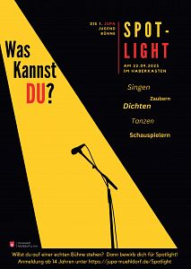 Das Jugendparlament Mühldorf will angehenden KünstlerInnen aus der Kreisstadt die Möglichkeit bieten, sich auf der großen Bühne im Haberkasten zu präsentieren. Die Veranstaltung heißt „Spotlight“ und findet am Freitag, 22. September, um 20 Uhr im Haberkasten in Mühldorf statt.