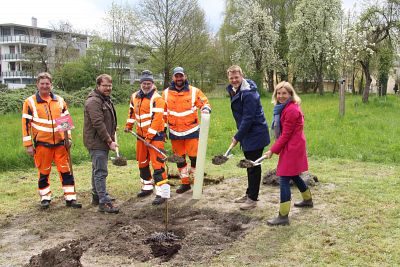 Bürgermeister Hetzl pflanzt anpassungsfähigen Klimabaum in Wiesenbiotop