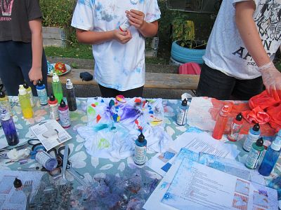 Kinder lassen beim Batiken ihrer Kreativität freien Lauf