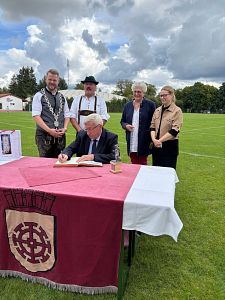 Mit einem kleinen Festakt hat Bürgermeister Michael Hetzl eine Delegation aus Cegléd empfangen. Auf dem Fußballplatz des TSV 1860 Mühldorf begrüßte er die Gäste aus Ungarn, die zur Feier der seit 20 Jahren bestehenden Partnerschaft der beiden Städte angereist waren. Um dieses Jubiläum gebührend zu würdigen, trugen sich Bürgermeister Dr. András Csáky und Renáta Eszter Boros vom ungarischen Generalkonsulat in München feierlich in das Goldene Buch der Stadt ein. Im Anschluss folgte ein von der Kreisstadt Mühldorf a. Inn ausgerichtetes Internationales Fußballturnier mit acht teilnehmenden Mannschaften – unter anderem Vertretungen der drei Partnerstädte.
