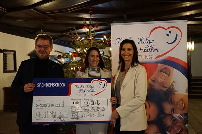 Bürgermeister Michael Hetzl hat eine Spende in Höhe von 6000 Euro für den Mühldorfer Hilfsfonds entgegengenommen. Das Geld stammt von der Karl und Helga Höcketstaller-Stiftung und kommt bedürftigen Kindern in Mühldorf zugute. Die Stiftung wurde 2009 von Karl Höcketstaller gegründet. Stiftungsvorsitzende Petra Höcketstaller und ihre Stellvertreterin Sandra Jung überreichten Bürgermeister Michael Hetzl den symbolischen Scheck.