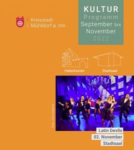 Der Mühldorfer Kulturherbst bietet im Veranstaltungskalender für September bis November in diesem Jahr wieder ein abwechslungsreiches Programm mit Spitzenkabarett, Jazz sowie Musik aus aller Welt. Der Veranstaltungskalender ist gerade neu erschienen und liegt ab sofort im Kulturamt (Stadtplatz 3) aus, sowie im Rathaus und vielen weiteren öffentlichen Einrichtungen in Mühldorf a. Inn und steht unter www.haberkasten.de zum Download bereit. Tickets sind für alle enthaltenen Kulturveranstaltungen im Vorverkauf erhältlich, bis auf das Alpenländische Singen und Musizieren (18. November 2022), hier beginnt der Vorverkauf am 06. September um 8 Uhr.