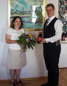 Mit einem Blumenstrauß und einer Flasche Sekt dankte 1. Bürgermeister Hetzl Helga und Gerd Ziche für ihr ehrenamtliches Engagement. „Das ist heutzutage nicht mehr selbstverständlich“, so Hetzl.