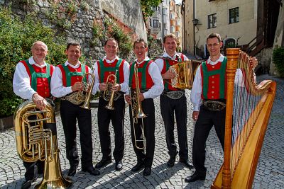 Franz Posch (Flügelhorn, Trompete), Roland Klingler (Flügelhorn), Harald Seiwald (Posaune), Georg Nolf (Basstuba) Hannes Höpperger (Harfe) und Stefan Peer (Steirische Harmonika) spielen Tanzlmusi, Bläserweisen und schöne Märsche.