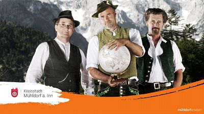 Endlich gehen Knedl & Kraut in Mühldorf auf „Bayerische Weltreise“. Eigentlich wären Toni Bartl, Juri Lex und Andy Asang schon im Rahmen des Sommerfestivals 2020 am 11. Juli im Haberkasten-Innenhof aufgetreten, dann am 3. November 2020 im Stadtsaal, beide Termine mussten Corona-bedingt verschoben werden – jetzt treten sie am Freitag, 29. Oktober um 20 Uhr im Stadtsaal auf.