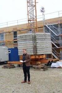 In seiner Rede ging der Rathaus-Chef darauf ein, dass der Bedarf an Kinderbetreuungseinrichtungen vorhanden sei und der Neubau zur Dezentralisierung der Kinderbetreuungsstandorte in der Kreisstadt beitrage. Das Gebäude werde als zweigeschossiger Holzbau ausgeführt, mit begrüntem Dach und einer Photovoltaikanlage, die mit der Luft-Wasser-Wärmepumpe zur CO2-Reduzierung beitrage. Neben den nachhaltigen und ökologischen Aspekten überzeuge der Bau durch einen großzügigen Zugangsbereich, helle Innenräume und Barrierefreiheit: das erste Obergeschoss ist mit einem Aufzug erreichbar. Zudem wurde schon an eine Erweiterung gedacht, im Westen der Kinderkrippe könnte ein neuer Kindergarten entstehen. Hetzl dankte den Planern und beteiligten Baufirmen für die problemlose Zusammenarbeit und zeigte sich dankbar, dass die Bauarbeiten bislang unfallfrei verlaufen seien. Planer und Architekt Robert Maier aus Neuötting erklärte die klare Baustruktur. Danach sprach Zimmerermeister Reinhard Obermeier den Richtspruch. Gemeinsam mit Vertretern des Stadtrates, der Planer und der beteiligten Baufirmen besichtigte 1. Bürgermeister Hetzl noch den Rohbau, als Dank für die gute Zusammenarbeit gab es für die Bauarbeiter eine Brotzeit.