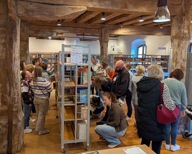 Den ganzen Abend lang florierte zudem der Bücherflohmarkt, in dem die Gäste stöbern konnten. Insgesamt wechselten 447 Bücher den Besitzer und brachten der Stadtbücherei knapp 360 Euro ein. Das Geld wird für neue Medien verwendet werden. Davon profitieren auch die neuen Büchereimitglieder: Innerhalb der drei Stunden meldeten sich neun Personen für einen Büchereiausweis an. Ein beachtlicher Wert – 2025 lag die Anmelderate bisher bei einer Anmeldung alle zwei Stunden.