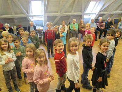 Die Kinder des städtischen Kindergartens an der Tachinger-See-Straße besuchten die Bewohner des Heilig-Geist-Spital-Seniorenheims in Mühldorf. Mit besinnlichen Weihnachtsliedern verbreiteten die Kinder eine vorweihnachtliche Stimmung und regten die Bewohner des Seniorenheims zum Mitsingen an. Insbesondere der Lichtertanz mit Kerzen und Musik begeisterte die Zuhörer ebenso wie die Gedichte und bayerischen Lieder. Nach dem gelungenen Auftritt bekamen die Kinder zum Dank Schokoladen-Christbaumaufhänger und tosenden Applaus.