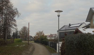 Die Beleuchtung ist mit jeweils 15 Watt LED-Leuchtmittel ausgestattet und wird abends nach 22 Uhr auf eine minimale Lichtstärke runtergefahren, morgens wieder auf 15 Watt erhöht. „Neben der Energieeinsparung ist es uns auch wichtig, dass die Nachtruhe der Anwohner nicht durch grelles Licht gestört wird“, so Erste Bürgermeisterin Zollner. „Zudem sind die 15-Watt-Leuchtmittel sehr insektenfreundlich.“