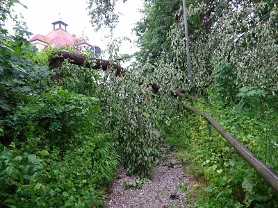 Ein angesägter Baum stürzte aufgrund dessen über den Fußweg.