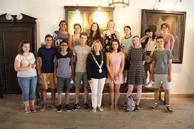 Auch dieses Jahr konnte Bürgermeisterin Marianne Zollner Schülerinnen und Schüler aus aller Welt begrüßen. Die 16- bis 17-Jährigen besuchen zurzeit das Ruperti-Gymnasium. Dabei handelt es sich um Prämienschüler, die in ihren Heimatländern herausragende Leistungen beim Erlernen der deutschen Sprache erzielt haben. Betreut werden sie von Christiane Wagner, Lehrerin am Ruperti Gymnasium.