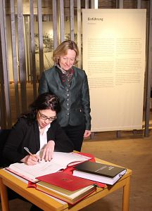 Die neue israelische Generalkonsulin, Sandra Simovich, kam zu einem Besuch der NS-Dauerausstellung im Mühldorfer Haberkasten. Sie zeigte sich sehr beeindruckt von der Ausstellung und den örtlichen Initiativen zur Errichtung einer Gedenkstätte im Mühldorfer Hart. Bei dieser Gelegenheit bat Bürgermeisterin Marianne Zollner sie, sich in das Goldene Buch der Kreisstadt Mühldorf a. Inn einzutragen.