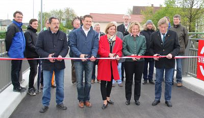 In ihrer Ansprache bei der Freigabe bedankte sich Bürgermeisterin Zollner bei den beteiligten Planungsbüros und Bauunternehmen für die hervorragende Zusammenarbeit mit der Stadtverwaltung und wünschte allen künftigen Nutzern der Brücke allzeit unfallfreies Überqueren des Innkanals.