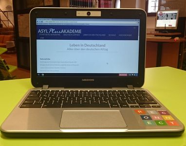 Die Chromebooks ergänzen das reichhaltige Angebot an Sprachkursen und –führern, und an anderen Materialien zum Erwerb der deutschen Sprache. Dazu zählen auch die Multiplikatorenbox „Deutsch als Fremdsprache“ und die Tiptoi-Boxen.