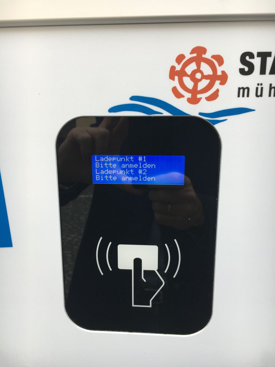 Karte muss vor das Display gehalten werden und dann wird die Ladesäule freigeschaltet.