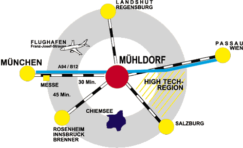 Egal, ob Sie mit dem Auto, der Bahn oder dem Flugzeug nach Mühldorf a. Inn kommen wollen, die zentrale Lage Mühldorfs ist Ihr Reisevorteil.
