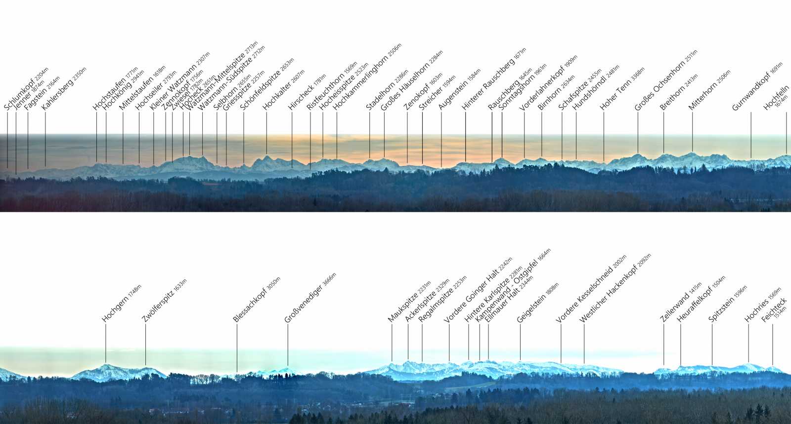 In Mühldorf a. Inn liegt gerade bei Föhn die Bergwelt direkt vor den Toren der Stadt. Hätten Sie gedacht, dass man hier vom Schlumkopf in den Berchtesgadener Alpen bis zum Feichteck in den Chiemgauer Alpen sehen kann?